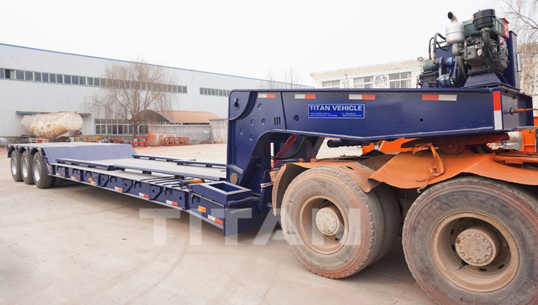 TITAN 60 Ton Front Loading Gooseneck Lowboy Lowbed Trailer for transport construction machinery, like crawler, crane, excavator, crawler loader and other crawler machinery. and it also called "Detachable Gooseneck Lowbed Trailer".With the low loading platform and voluminous loads trailers are in great demand, TITAN Front loading lowbed trailer the best solution for your transportation needs. TITAN detachable lowboy trailer are noted for their highly robust structure steel and high loading capacity from 60 ton load capacity to 150 ton load capacity.TITAN can provide you the customize Removable Gooseneck Lowboy Trailer to meet your transport requirements.